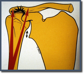 Most rotator cuff tears in young active patients are treated surgically, with good to excellent results in the vast majority of patients. However, tears that go undiagnosed for a prolonged period of time gradually become more and more retracted, scarring in place in a very retracted position. The associated muscles often atrophy. Patients with this problem usually present with a combination of pain and weakness. Without a functioning rotator cuff, the deltoid lacks a fulcrum to pull against. When the deltoid contracts in an attempt to lift the arm, the humerus instead elevates, running into the upper shoulder blade (acromion). This creates pain and an inability to lift the arm effectively.