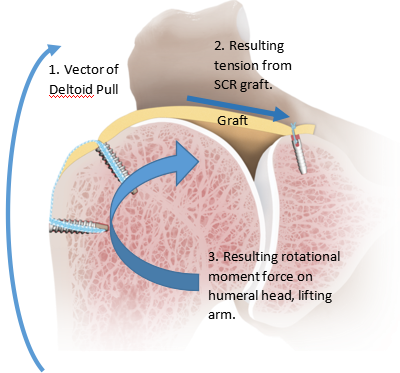 In an SCR, allograft tissue (usually cadaveric dermis) is used to attach the upper humerus (arm bone) to the upper shoulder socket. This is a technically straightforward and relatively fast procedure. It is done as an outpatient like most other arthroscopic shoulder procedures.